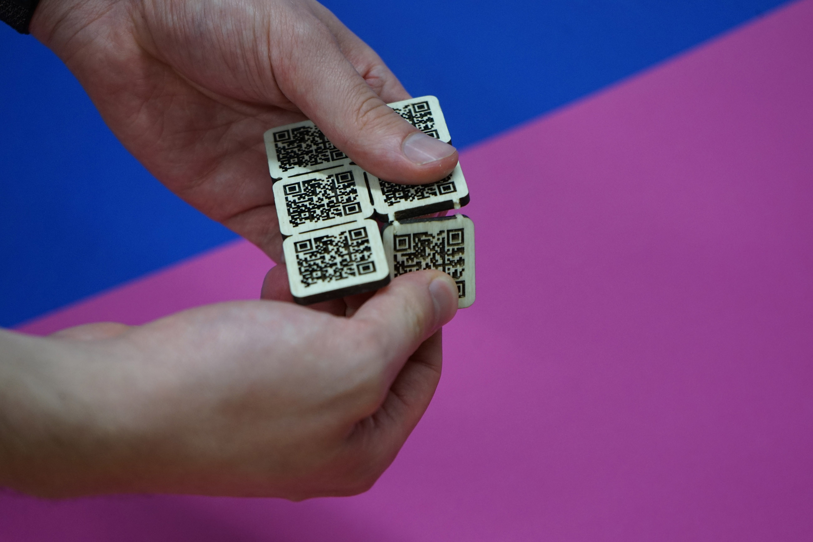 Das Giveaway „Shäre“ besteht aus einem analogen und einem digitalen Teil. Eine Holzkarte aus sechs Teilstücken bildet den analogen Mittelpunkt. Jedes Stück besitzt einen QR-Code. Damit gelangt der Nutzer in eine Web-Applikation. Auf dieser kann der Nutzer eine kurze Geschichte mit seinem Ort und einer Emotion veröffentlichen.