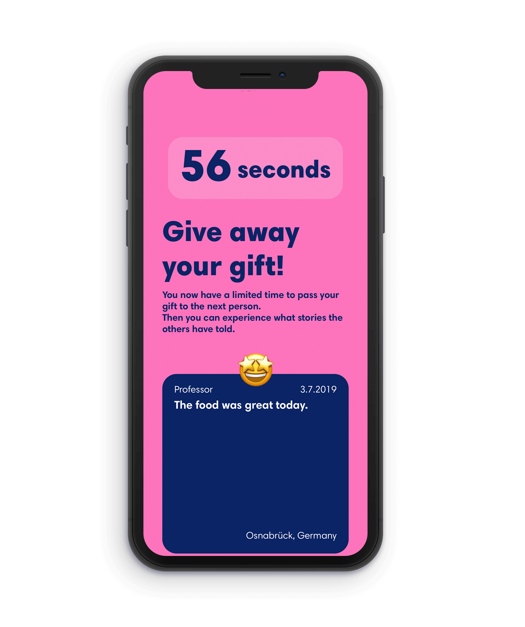 Was definiert sie? Die Mensa? Die Studiengänge? Die Gebäude? Nein, es sind die Menschen und ihre Erfahrungen und Geschichten, die sie vor Ort erleben. Sie stehen im Mittelpunkt des Giveaways. Das Weitergeben von Erfahrungen und Geschichten schafft die Möglichkeit, sich mit der Hochschule Osnabrück zu identifizieren.